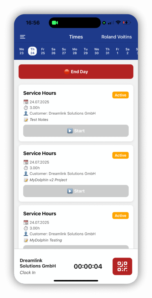 Ermöglichen Sie präzises Zeittracking per QR-Code-Scan über die mobile App, verwalten Sie Arbeitssitzungen und Tagesprotokolle mühelos und erstellen Sie detaillierte Berichte für eine intelligente Zeitanalyse.